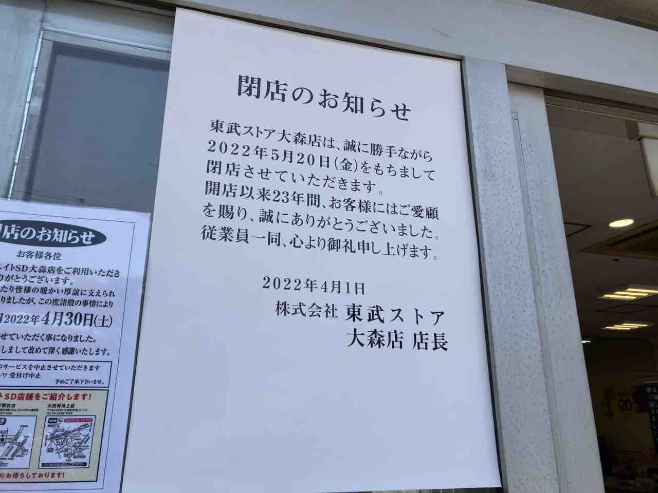1店舗目は『東武ストア 大森店』