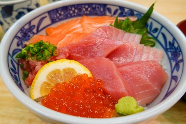 海鮮丼にパウンドケーキにわらび餅…