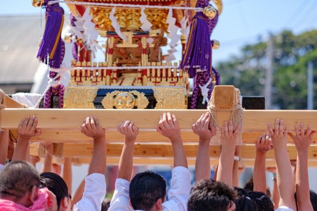 羽田の町を練り歩く大神輿。