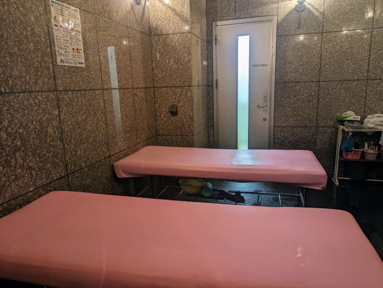 女性用浴室のすぐ隣は「韓国式アカスリ」