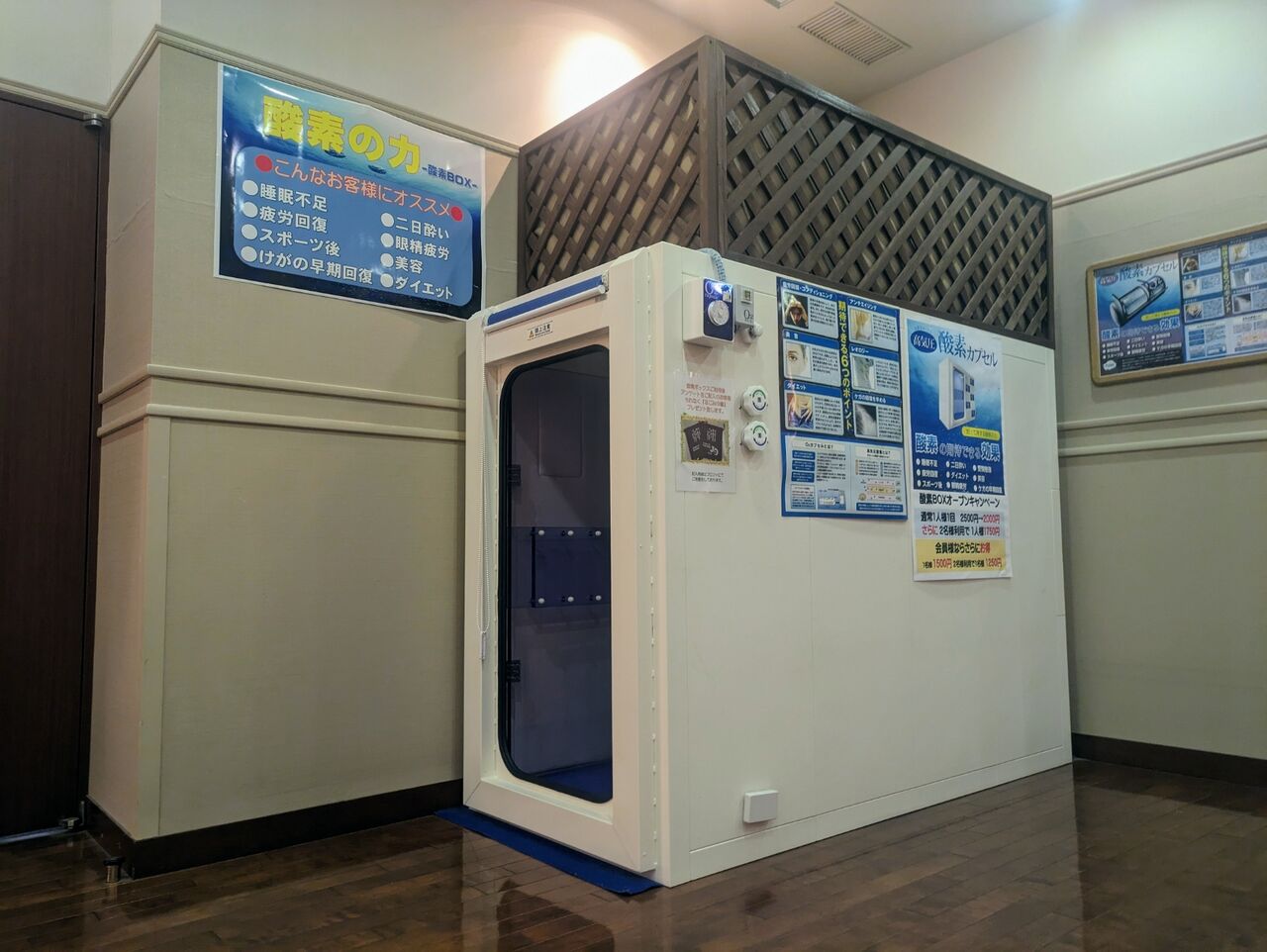 岩盤浴、酸素BOXなんかも含む