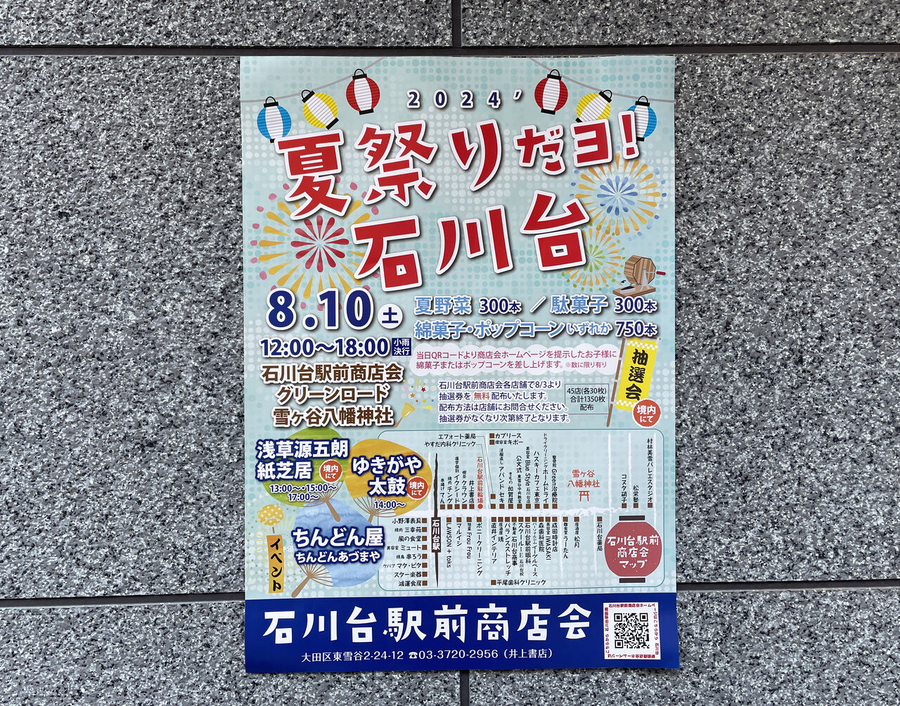 住 所:石川台駅前商店会(大田区東雪谷2-24-12)、雪ヶ谷八幡神社(大田区東雪谷2-25-1)